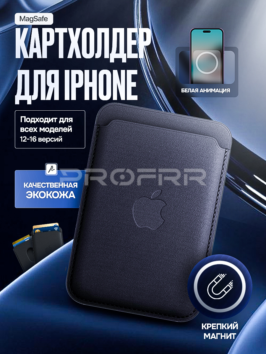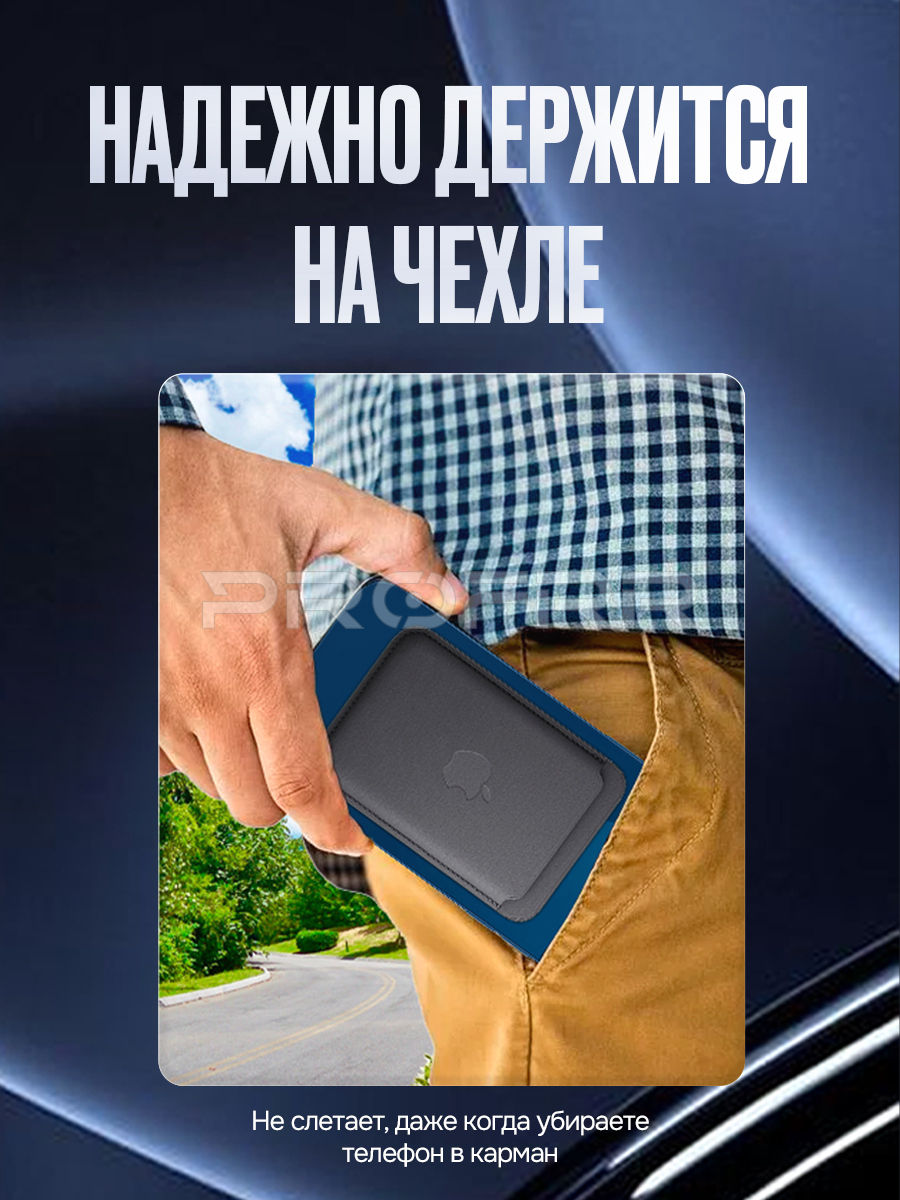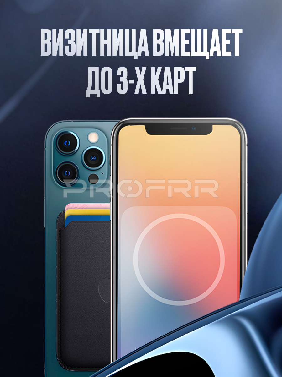 Картхолдер магнитный с креплением MagSafe и анимацией для Iphone. Экокожа. Черный. Арт. ВБ 260476795