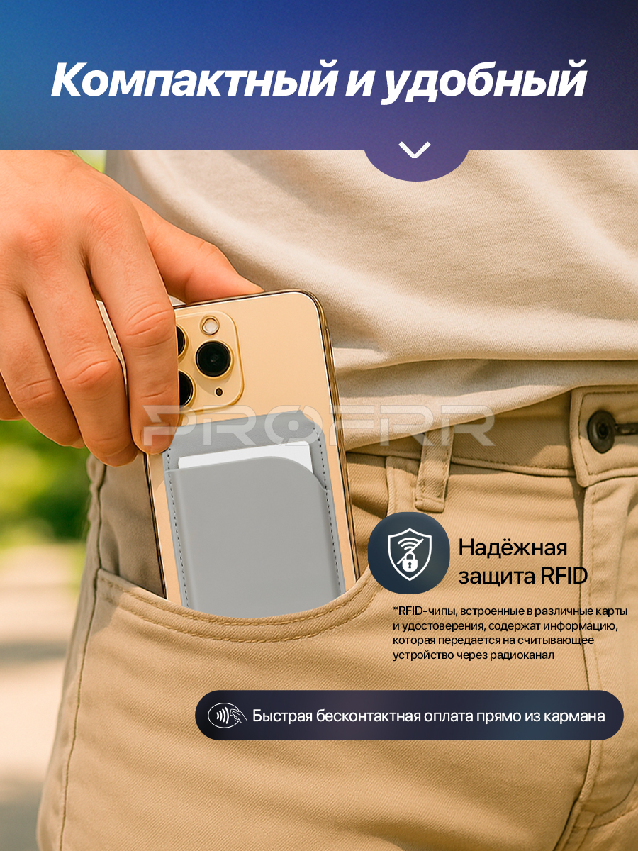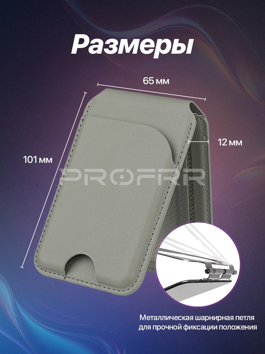 Магнитный картхолдер MagSafe для Iphone с защитой RFID, искусственная кожа. Цвет серый. Арт. ВБ 392215124