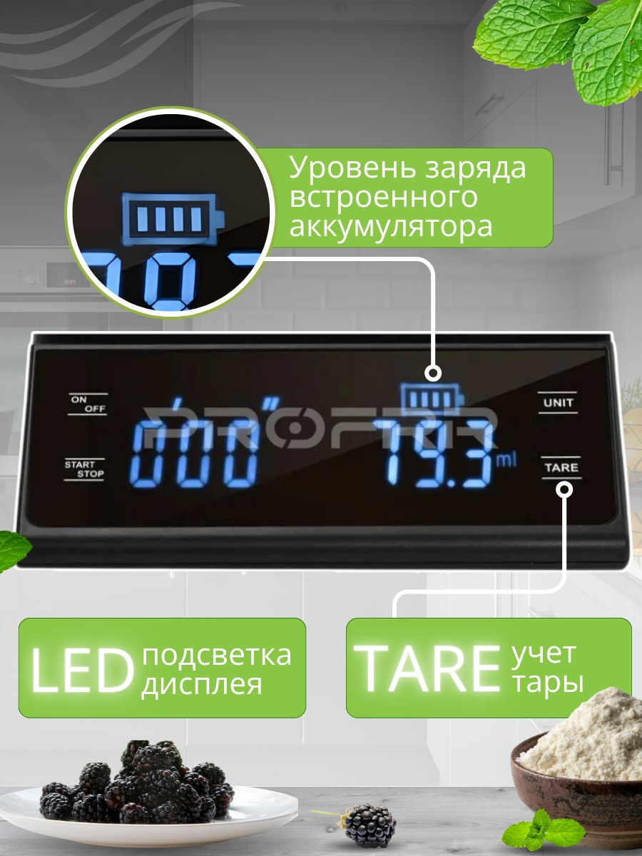 - Точность измерения: до 0,1 г (подчёркнуто как важное преимущество).