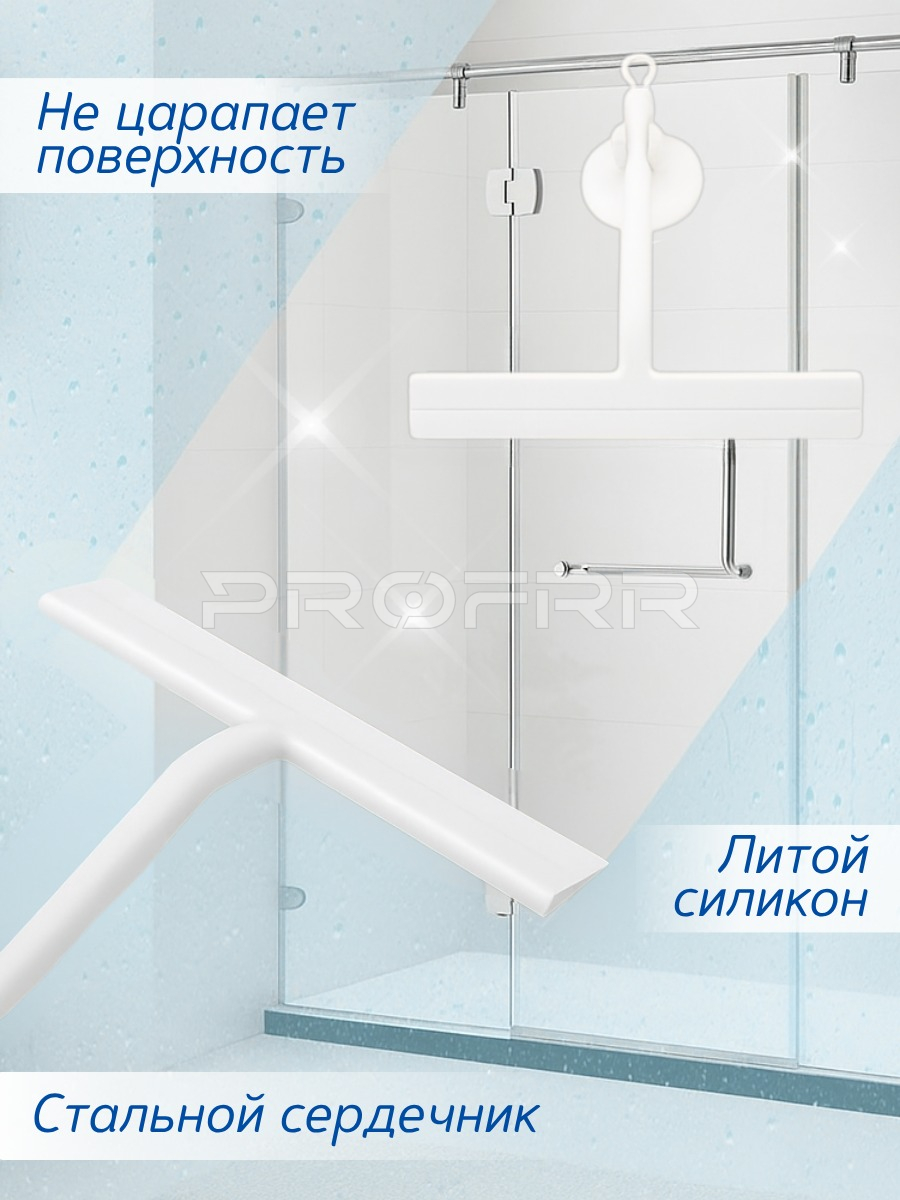 Водосгон-скребок силиконовый с держателем-присоской для душевой кабины, окон, зеркал и тд. Цвет белый. Артикул ВБ 705104287