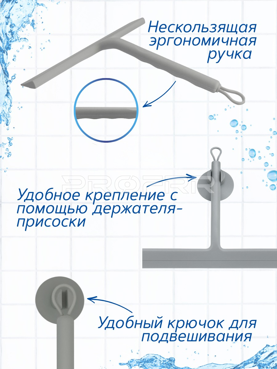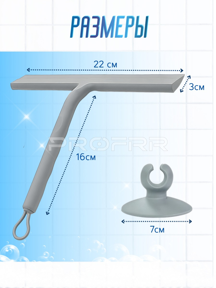 Водосгон-скребок силиконовый с держателем-присоской для душевой кабины, окон, зеркал и тд. Цвет серый. Артикул ВБ 231621466