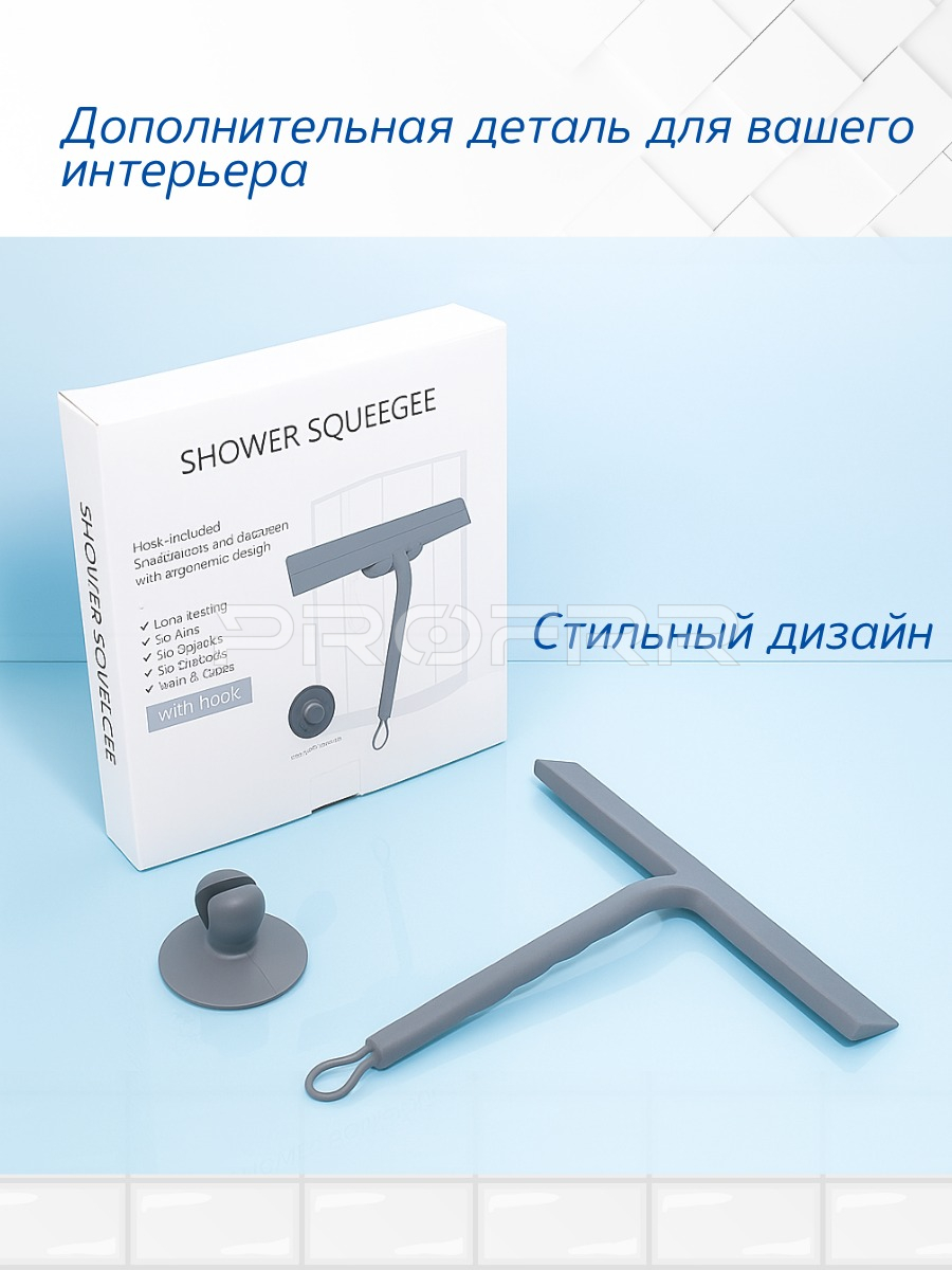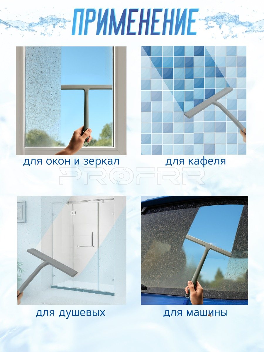 На изображении представлена реклама скребка-водосгона — инструмента для удаления воды с различных поверхностей.