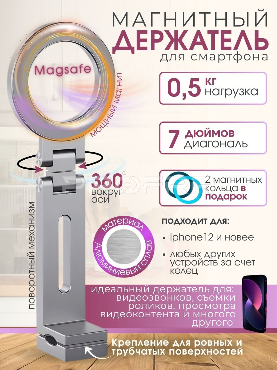 На изображении представлена реклама магнитного держателя для смартфона с технологией MagSafe.